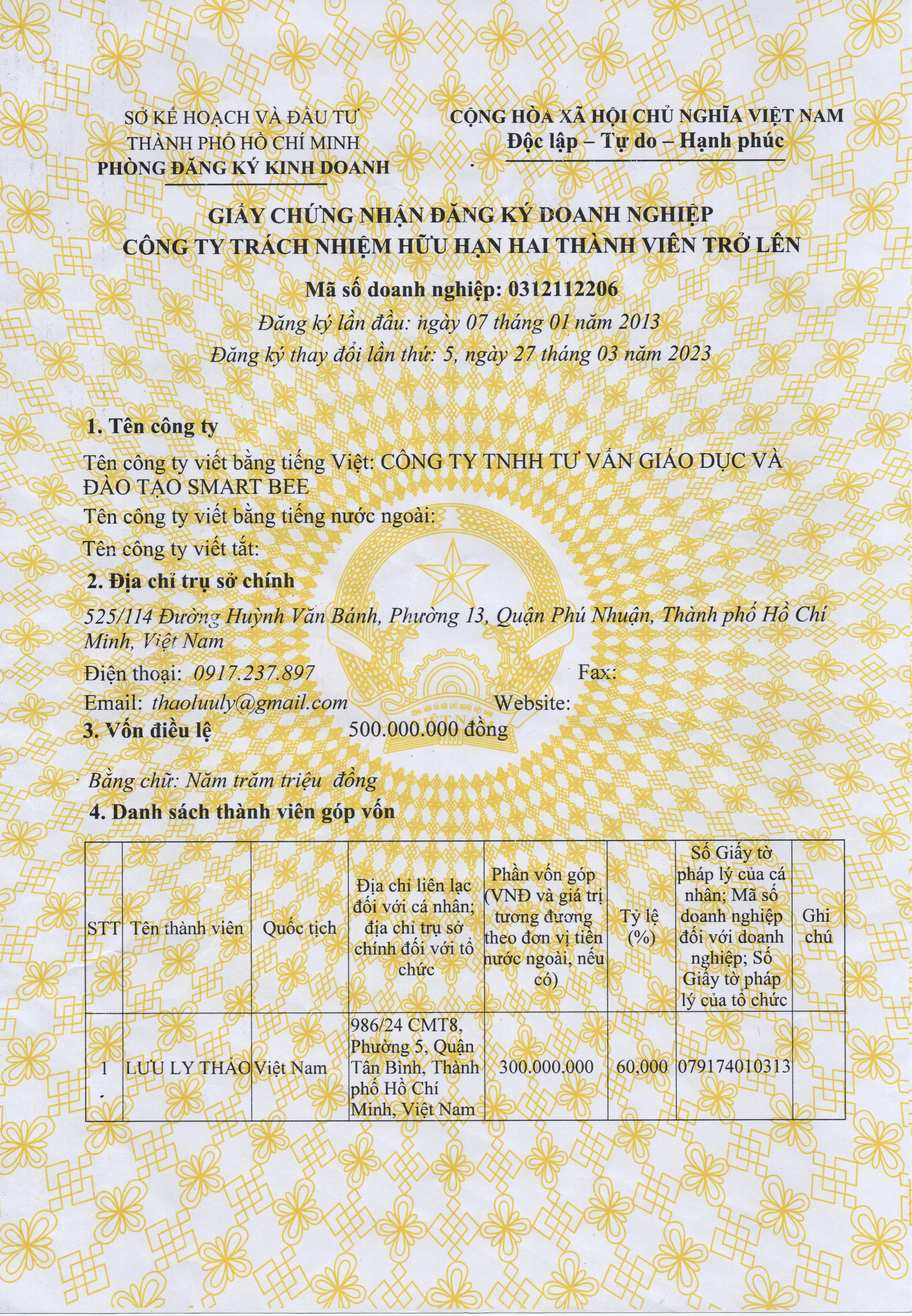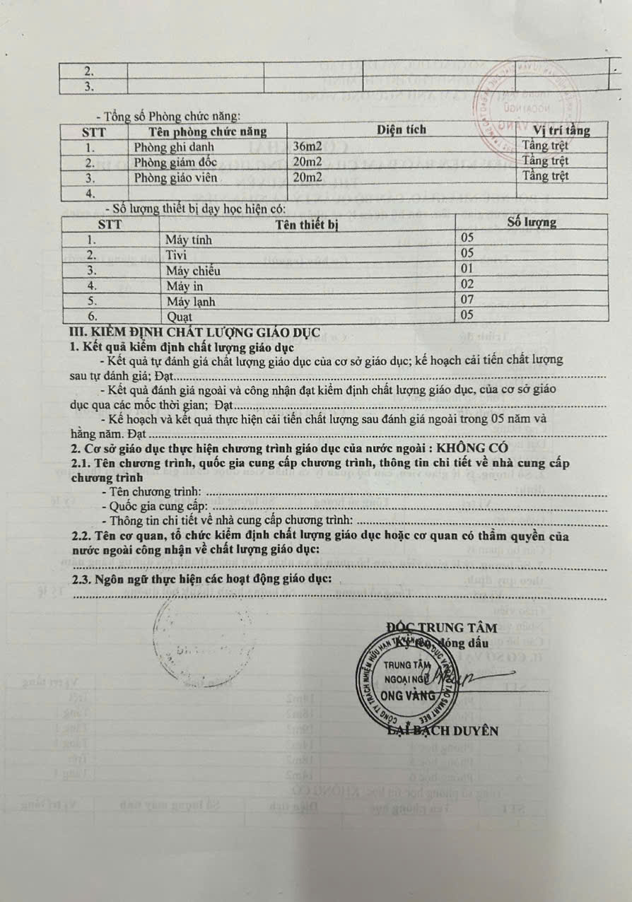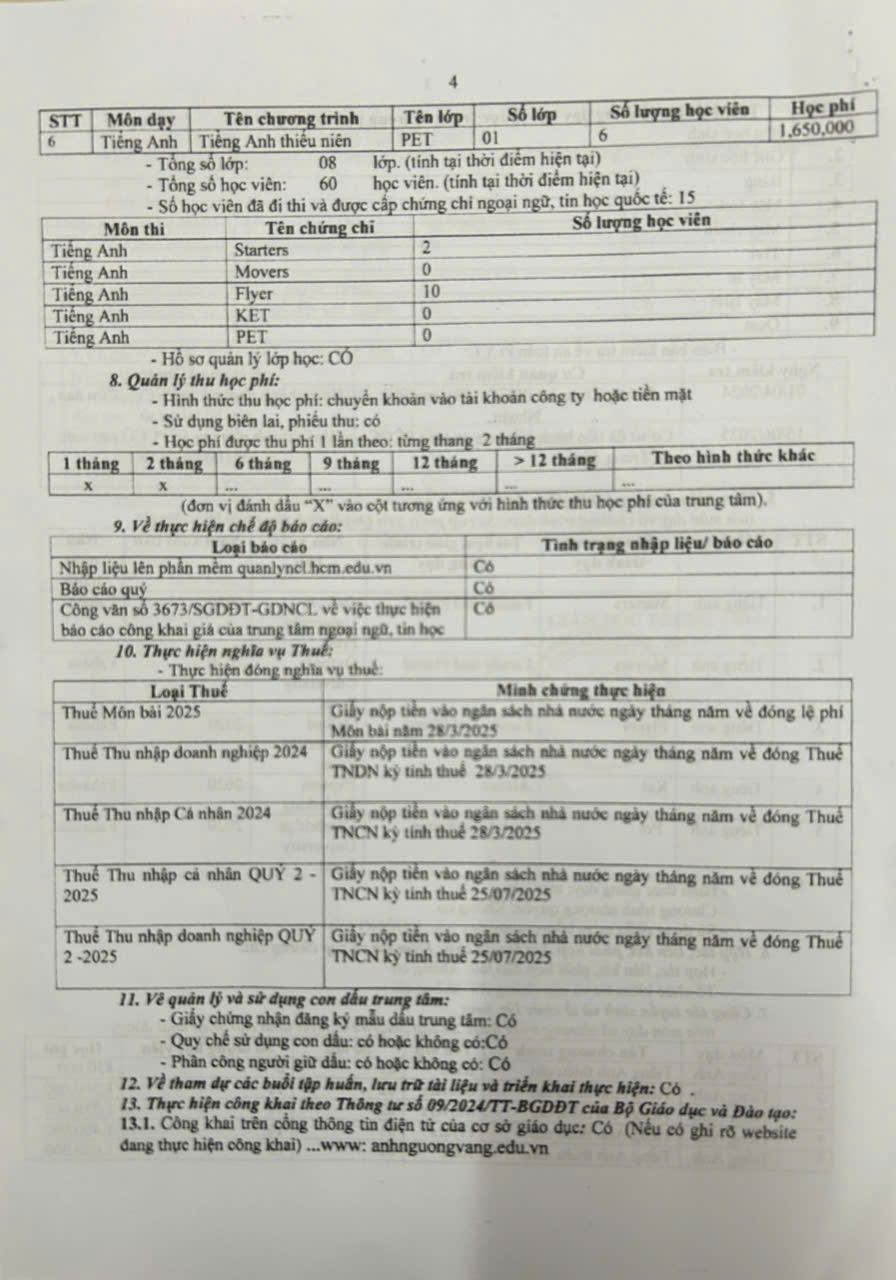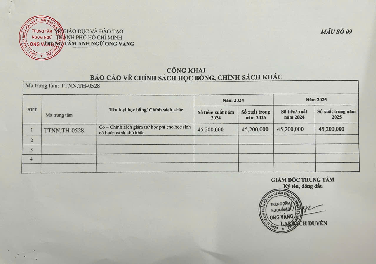 Tất cả các văn bản, giấy tờ pháp lý và tài liệu của Trung Tâm Anh Ngữ Ong Vàng